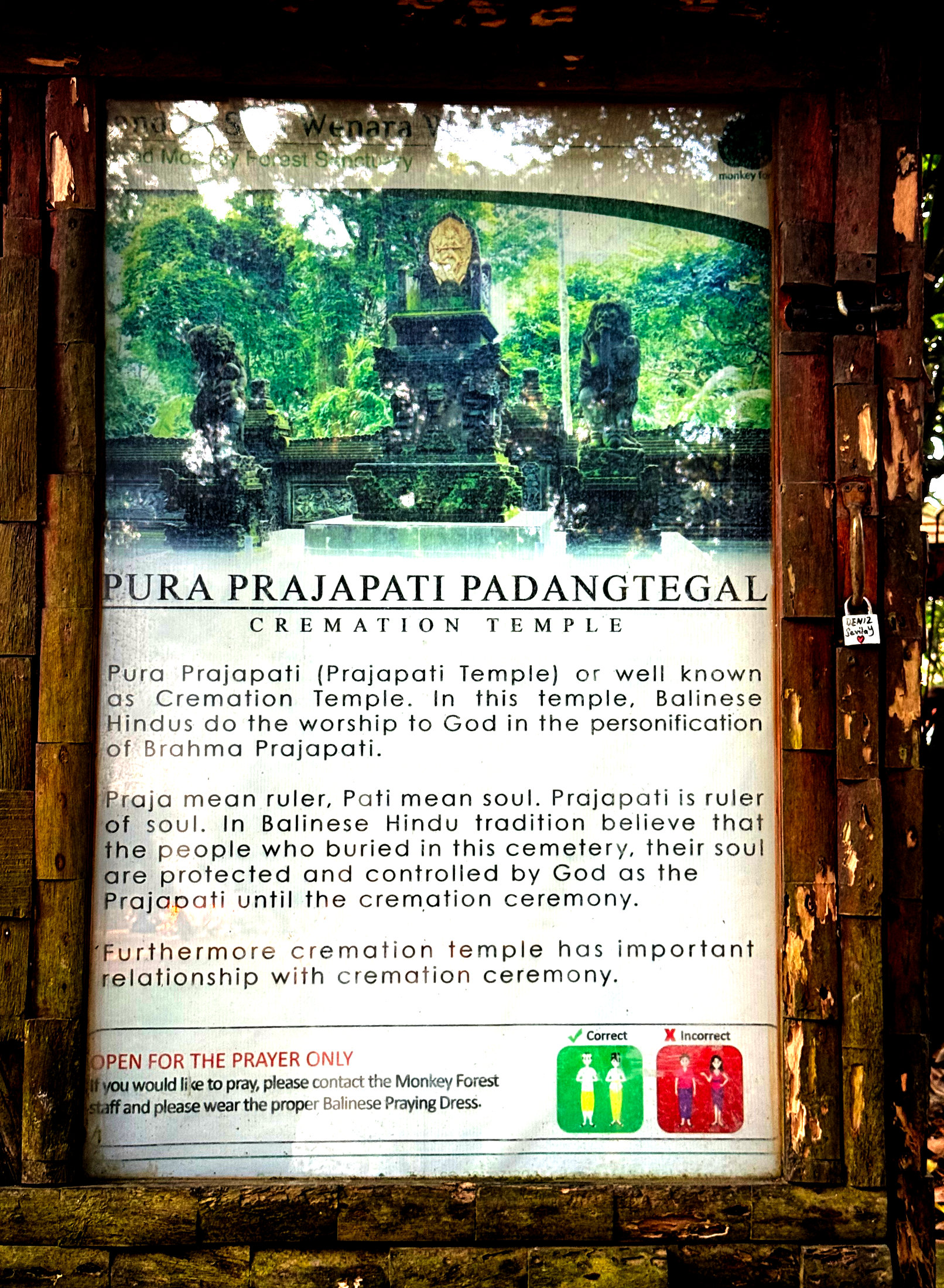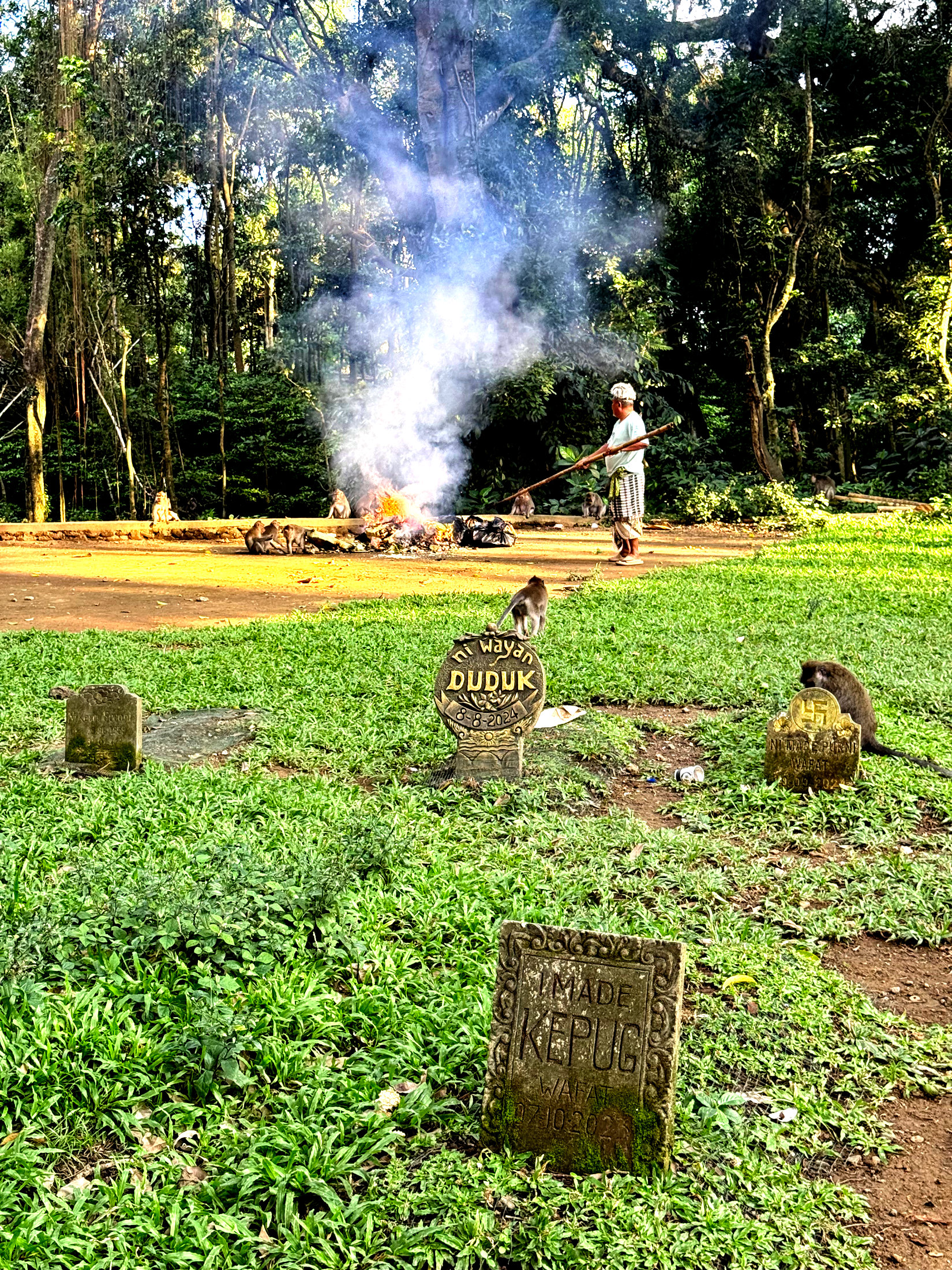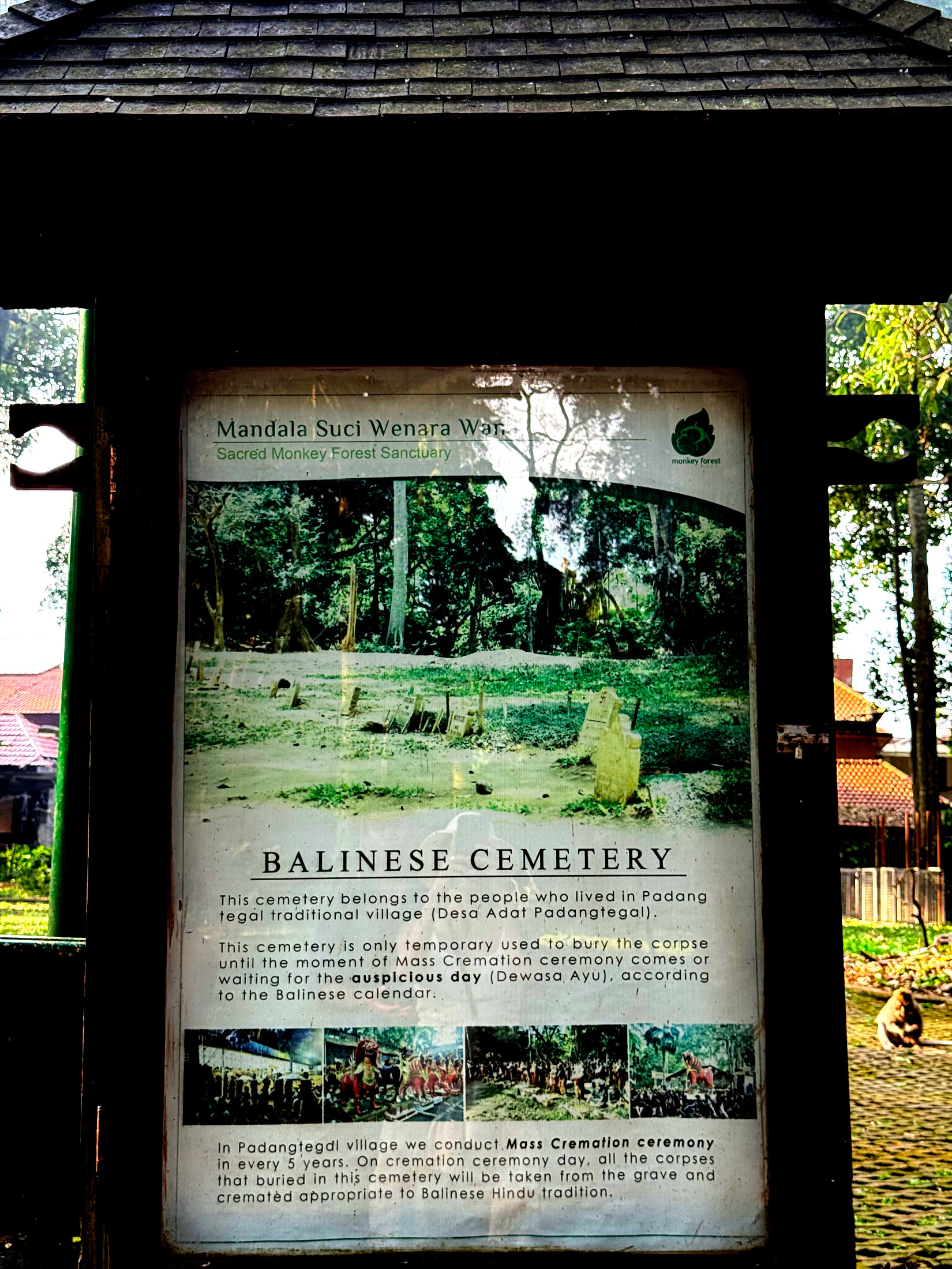The place is crawling with monkeys — but beyond that, it’s also a sacred Balinese temple complex and, oddly enough, a public holding place for the dead.